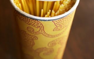 Här har man använt ett tomt chipsrör att förvara spagetti i. Tänk att få slippa spagetti som faller ur sin plastförpackning, och få en förvaring som fungerar! Just denna har man piffa upp med ett fint papper. Bilden kommer från Art of Domesticity